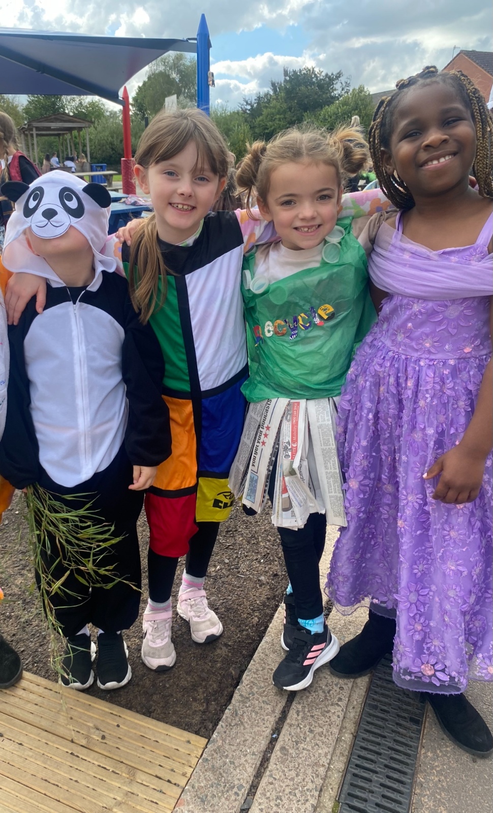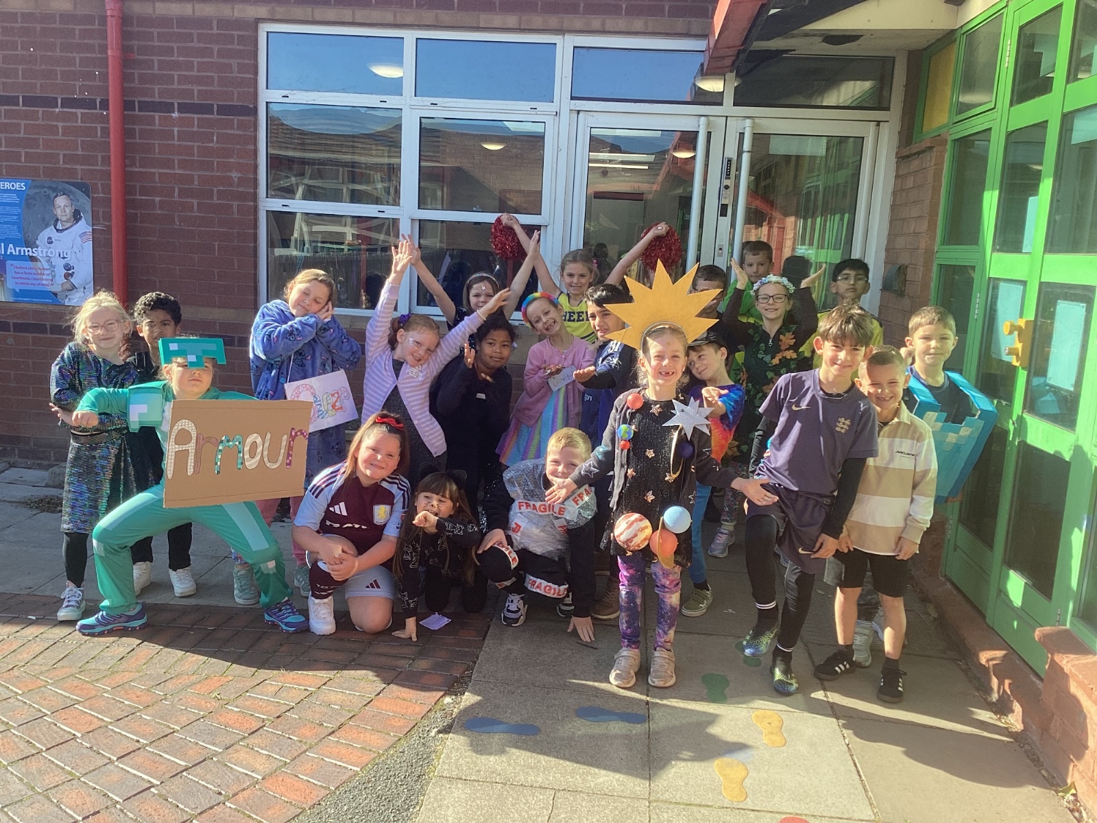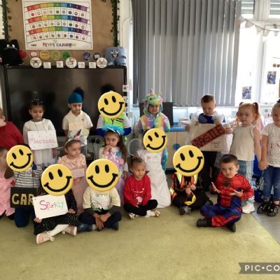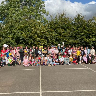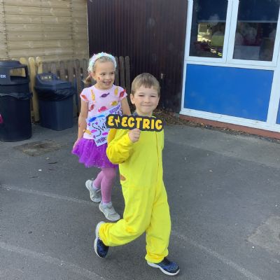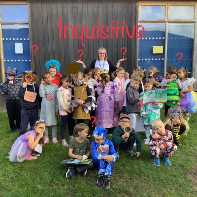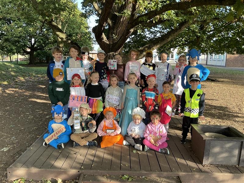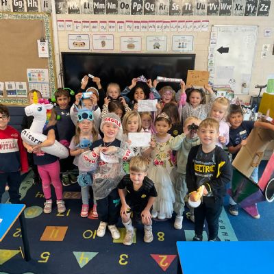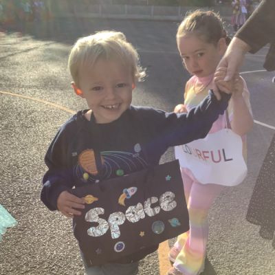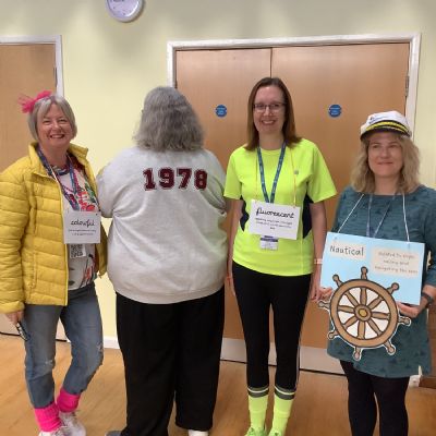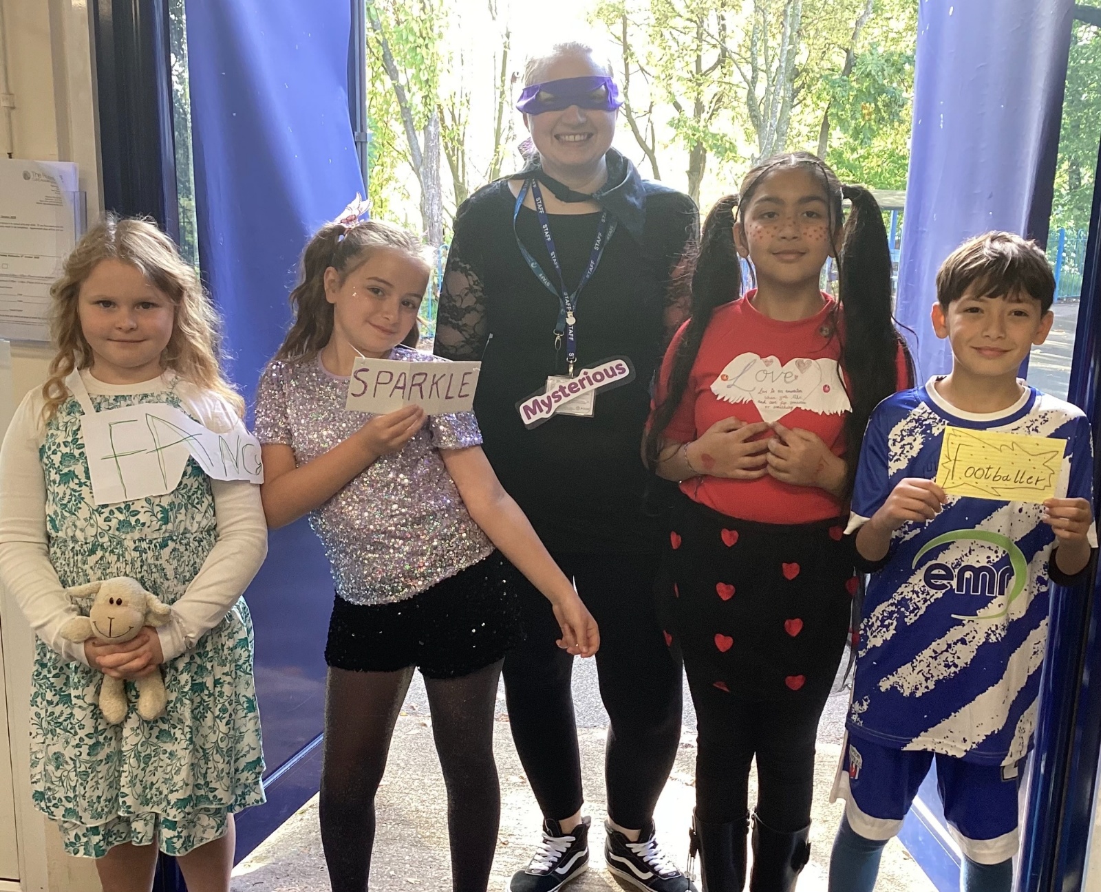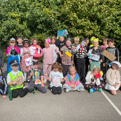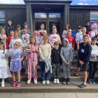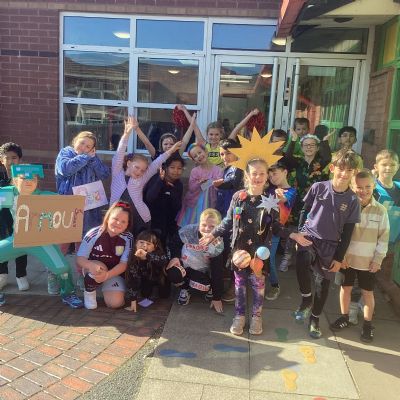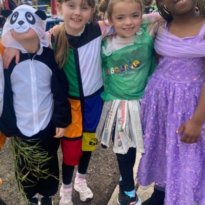 Pupils and staff dressed as words like metamorphosis and courageous, taking part in creative activities to explore language and spark conversations.