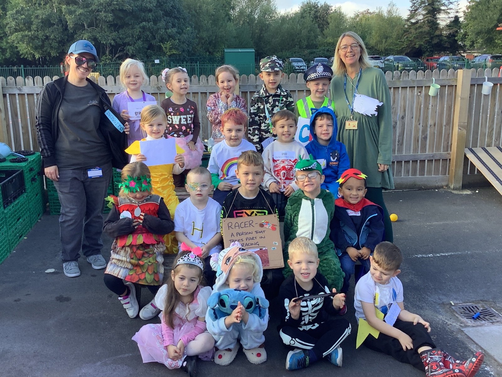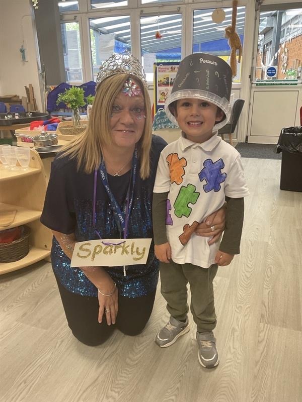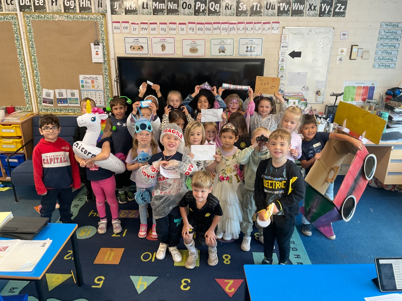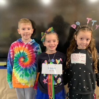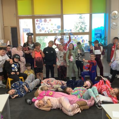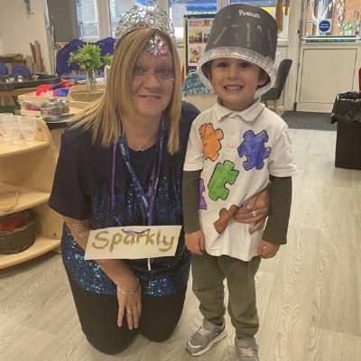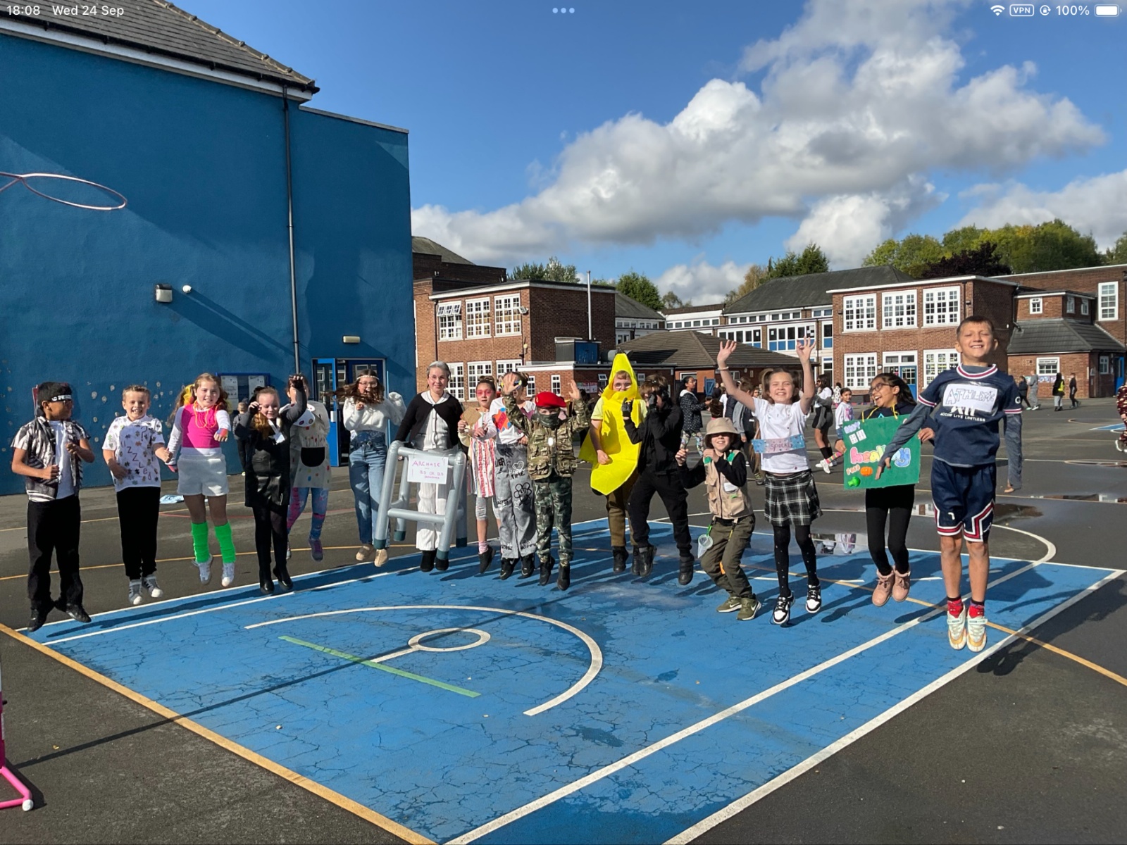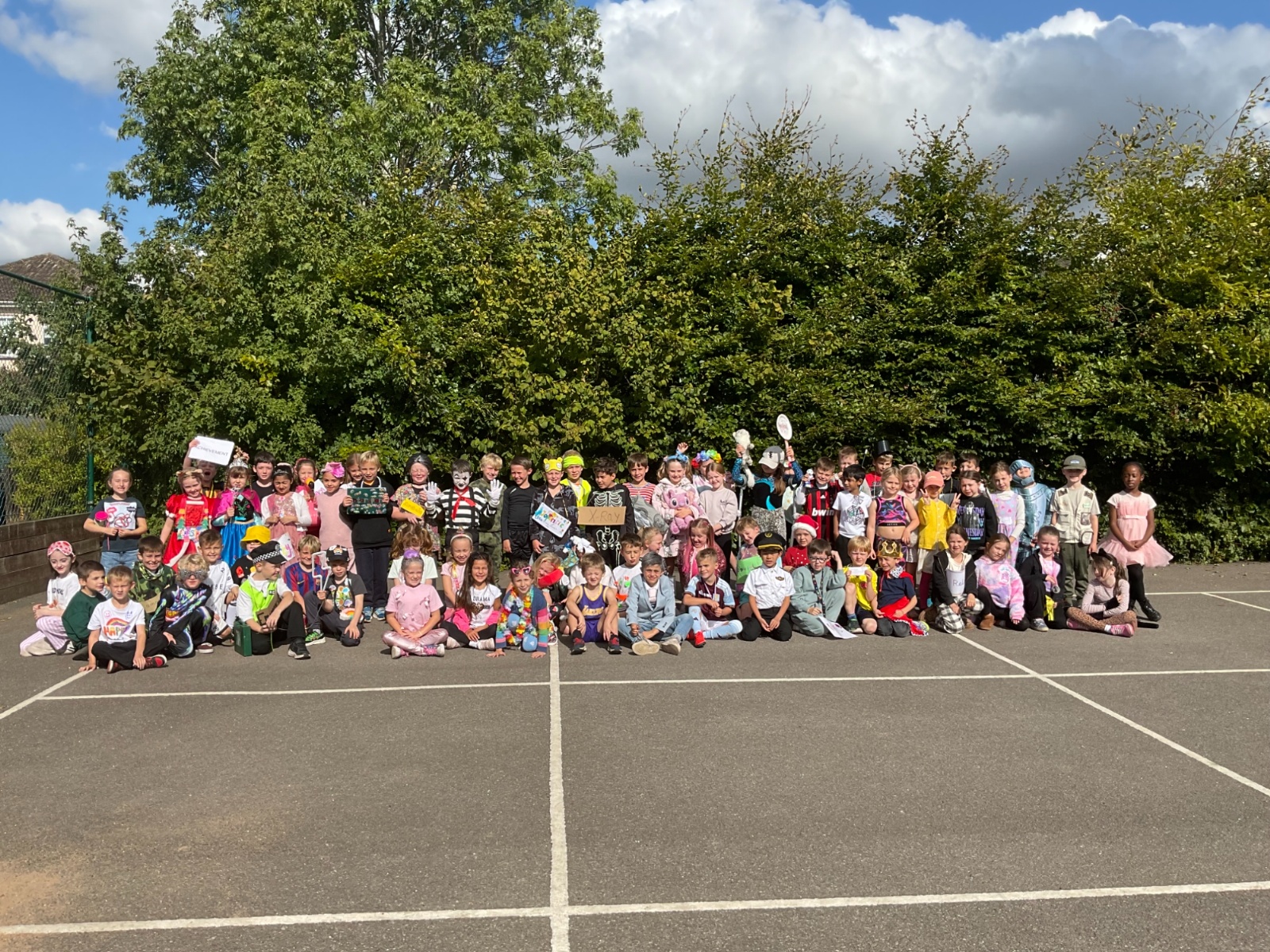 Pupils and staff dressed as words like metamorphosis and courageous, taking part in creative activities to explore language and spark conversations.